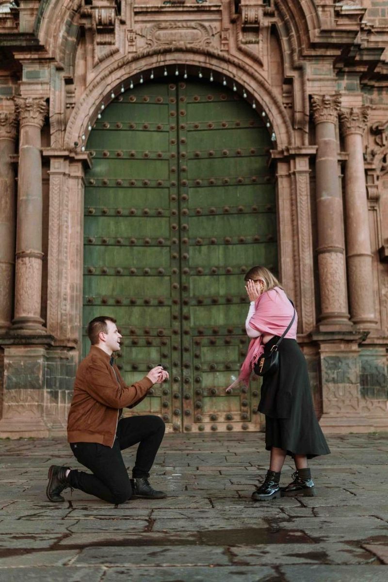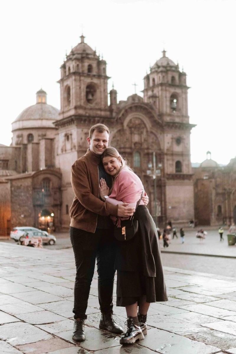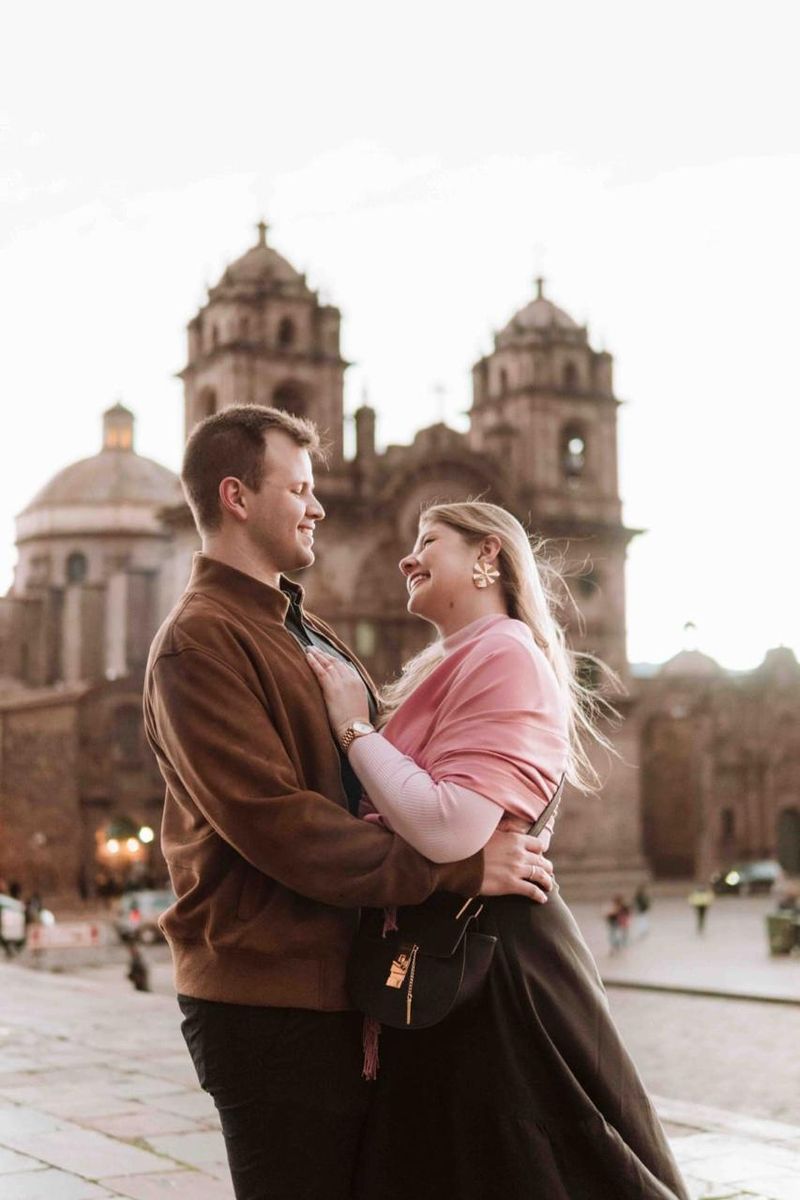 Nosso pedido de casamento aconteceu na Plaza Mayor de Cusco, no coração do Peru — e, simbolicamente, no coração de um puma, como nos conta a história inca. Cusco, desenhada no formato deste animal, guarda nessa praça o pulsar de sua história. Ali, onde os caminhos se cruzam, dissemos “sim” ao início da nossa jornada. Por isso, queridos convidados, vocês verão muitos corações ao longo do nosso casamento. Para nós, eles representam mais do que amor — são o símbolo do lugar onde tudo começou e do sentimento que nos guia. É com esse coração que escolhemos caminhar juntos, lado a lado, para sempre.